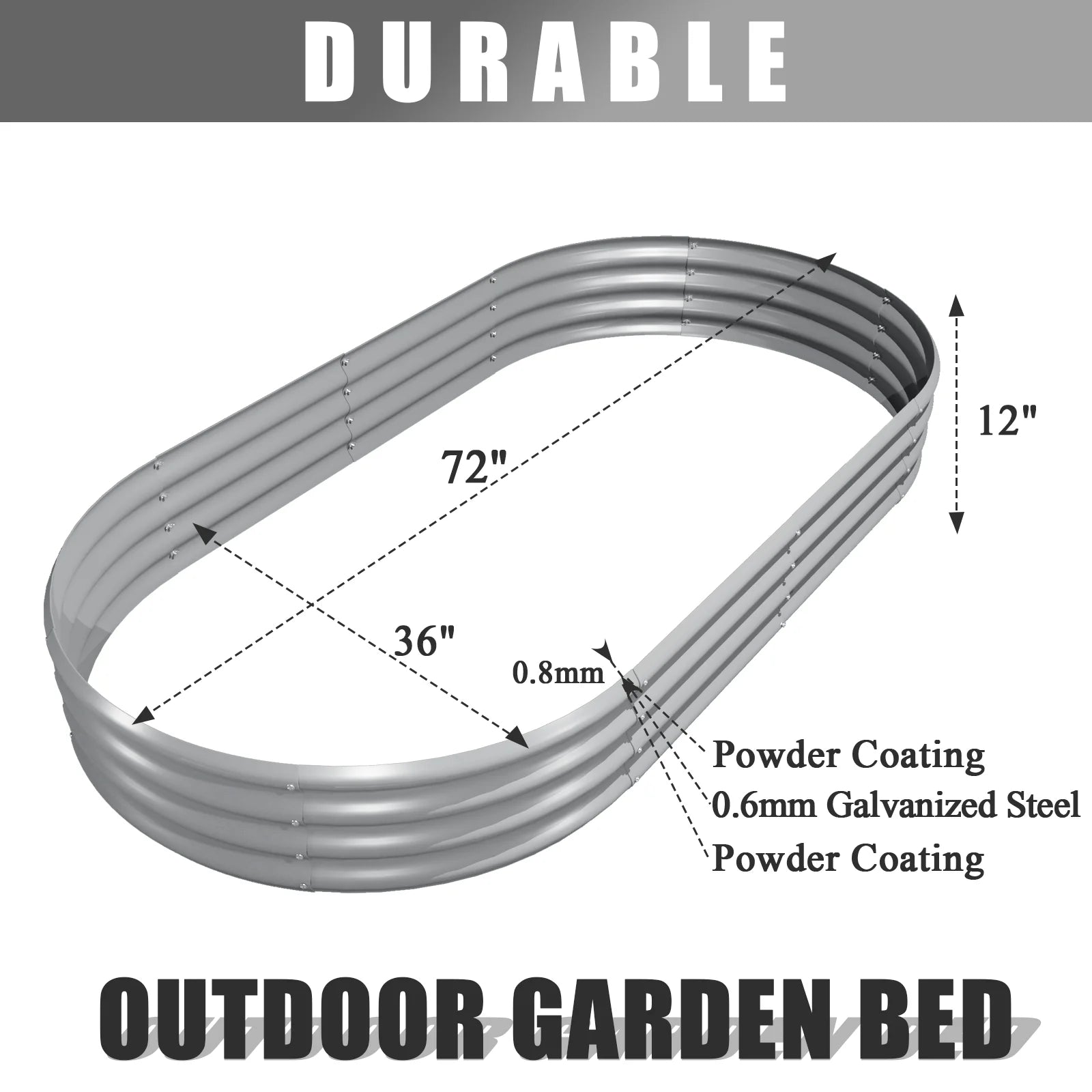 【Durable Material--0.8mm Thickness】Our metal planter raised bed is made of 0.8mm (22-gauge) thickened galvanized sheet. The wave structure can withstand high pressure without loosening, sturdy enough for long-lasting outdoor use. And the powder coating is not only beautiful but also rust-proof and corrosion-proof, much better protects the flower bed, thereby enhancing its durability