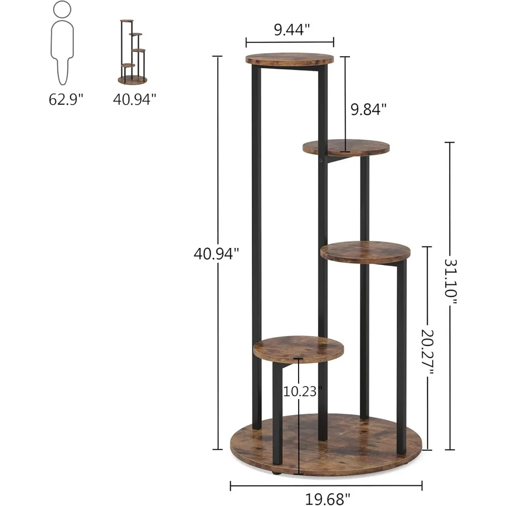 - [Multiple Potted Plants Holder for Corners]: 4 layers of round support display space for your lovely plants. Each tray in diameter 9.44" for small/ middle size bonsai, planters and flower pots. Overall size: 19.68"(L) X19.68"(W) X 40.94"(H). Your ideal corner decoration shelves. Suit for Indoor use.