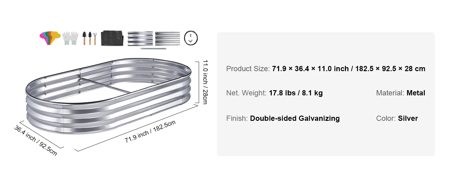 Your Security Comes First: You no longer have to endure hand injuries while gardening. You will be ready to create the perfect garden and show off your skills! The edges of our raised garden bed are all folded and feature rubber strips, preventing injuries and fatigue. We also provide gloves to ensure your security during installation and gardening. It's about time you brought your garden to life.