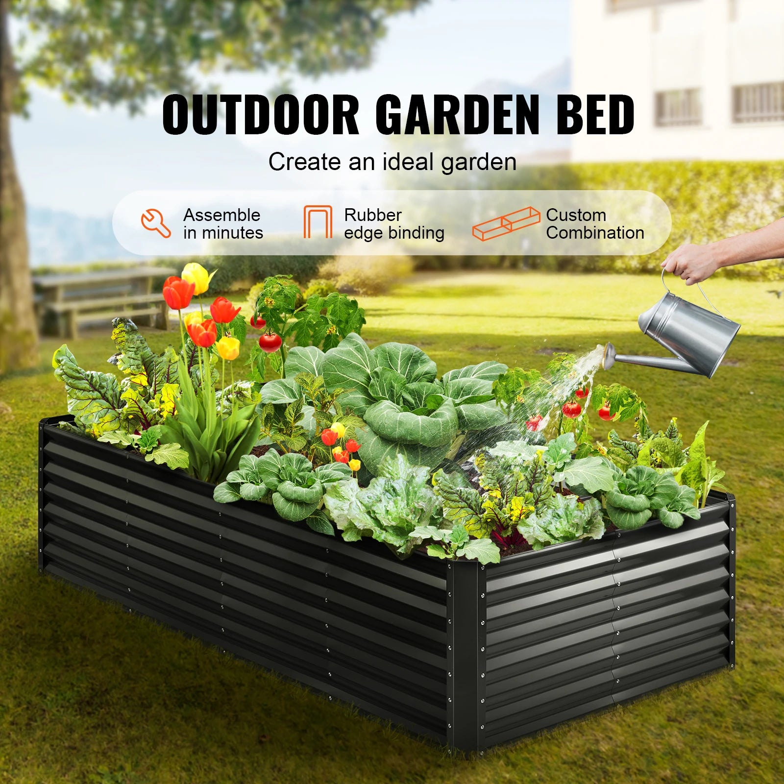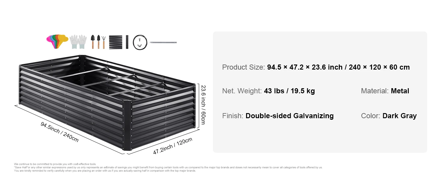 Unbeatable Structure: The raised planter box is made of 0.04"/1 mm thick aluminized zinc board with rust-proof double-sided spraying. The premium material and stable construction allow it to be used outdoors for years to come. Guess what? It is so sturdy that it won't be blown over by strong wind. Get ready to stand up to the harshest conditions while caring for your garden!